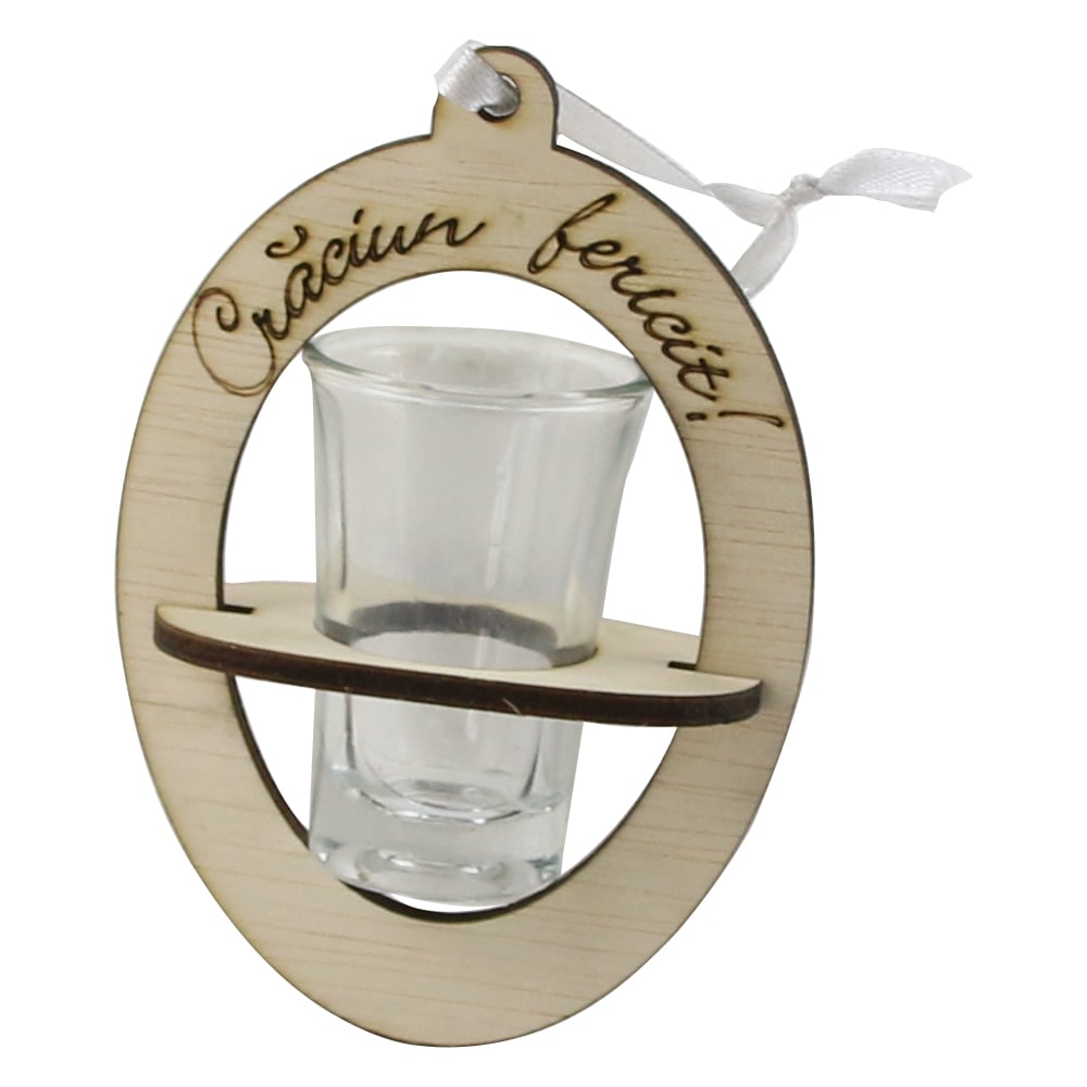 Pahar shot cu suport lemn, „Craciun fericit!” 9×13 CM