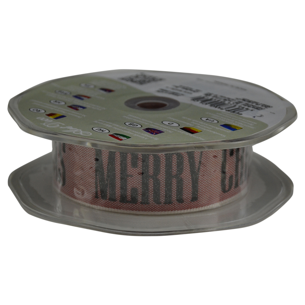 Panglica realizata din material textil – Merry Christmas – Roz (25MM X 10m)