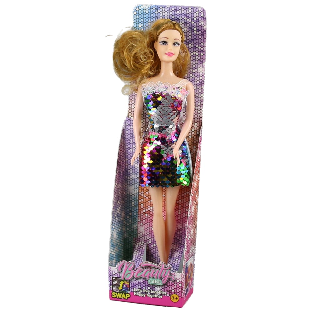 Papusa Beauty Girl cu rochita paiete reversibile, 3+