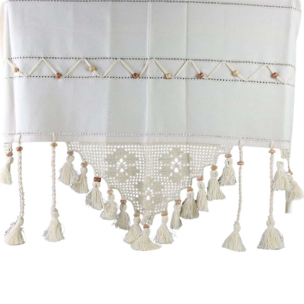 Perdea rustica din bumbac 140 x 100 cm, cu dantela si margele din lemn