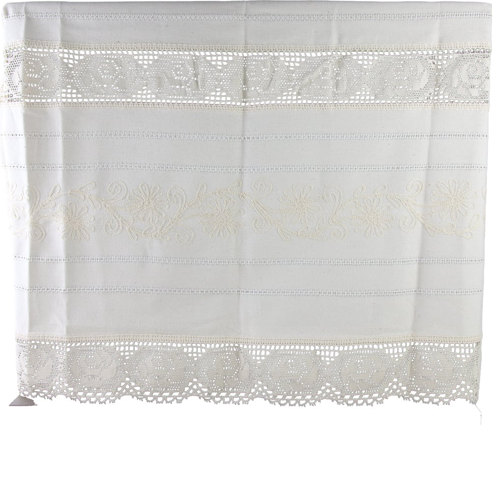 Perdea rustica din bumbac 140 x 180 cm, cu dantela trandafir si brodarie