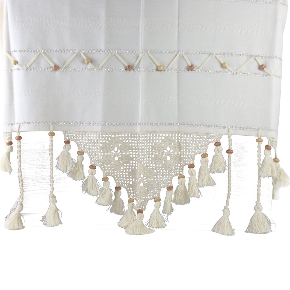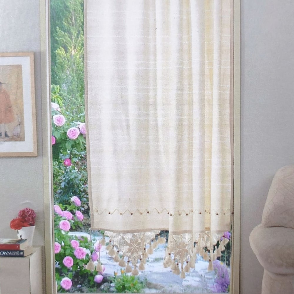 Perdea rustica din bumbac 160 x 180 cm, cu dantela si margele din lemn