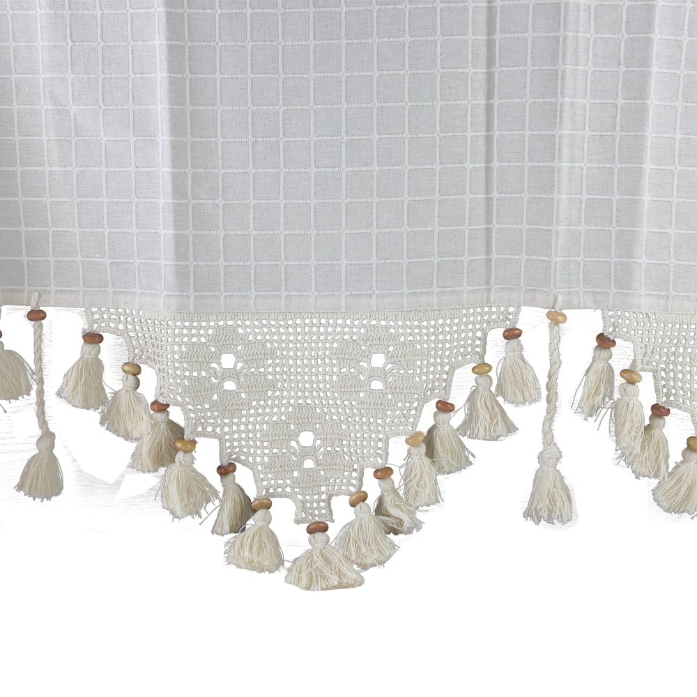 Perdea rustica din bumbac 160 x 180 cm, cu dantela si margele din lemn, ecru