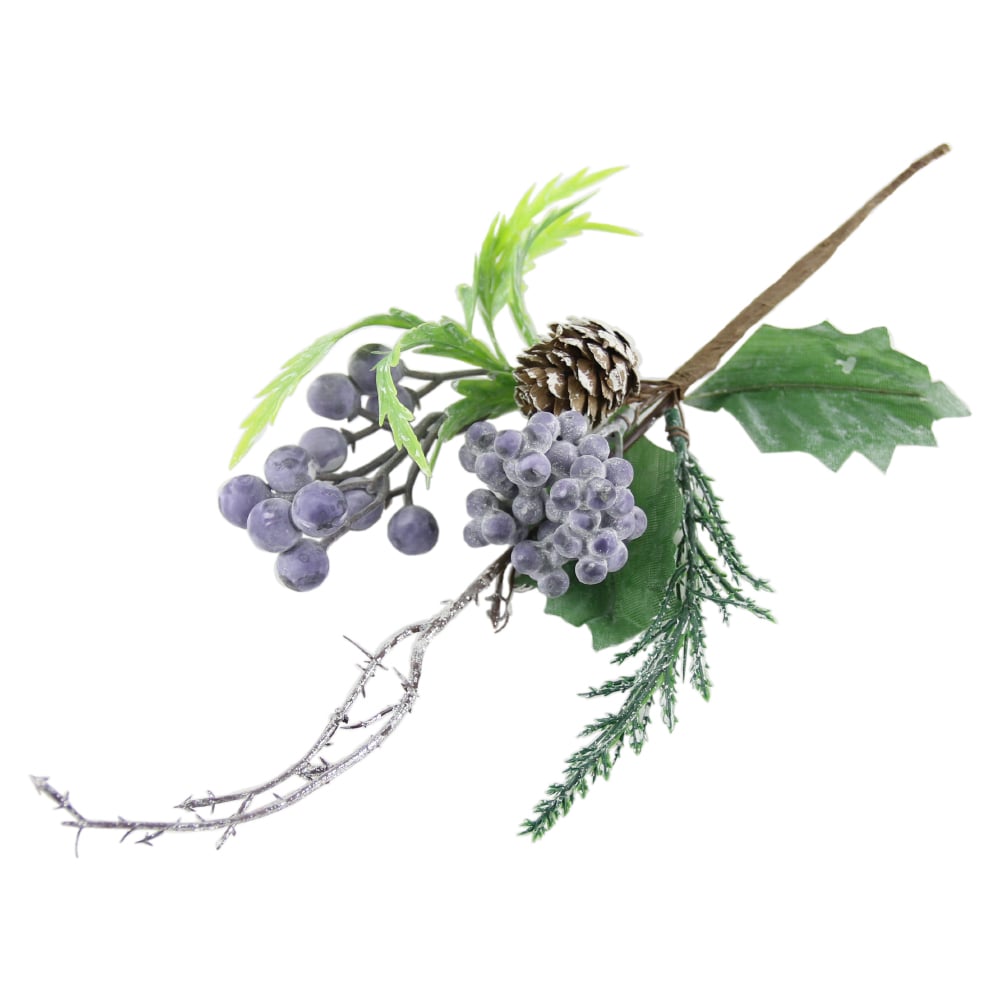 Pick creanga cu bobite si con de brad 28 CM, Mov