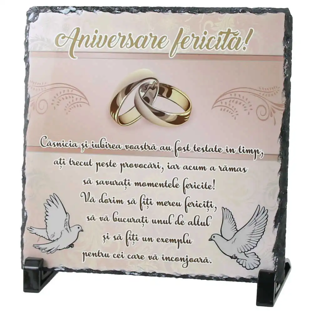 Placa ardezie „Aniversare fericita…” 19×19 CM