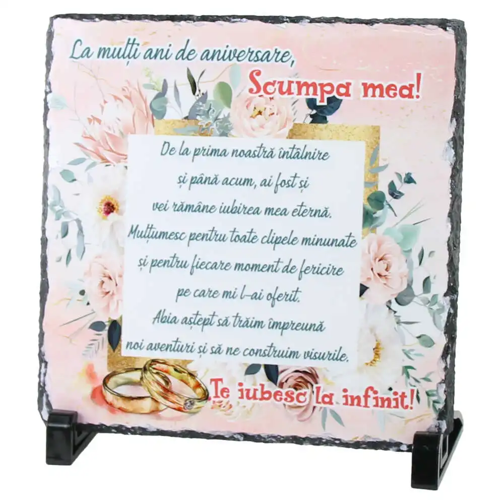 Placa ardezie „La multi ani de aniversare, Scumpa mea!…” 19×19 CM