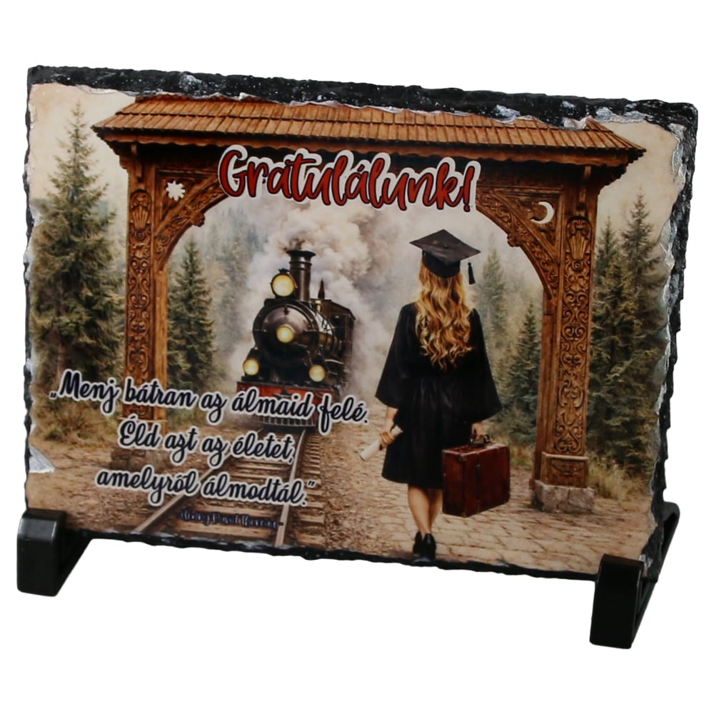 Placa ardezie pentru absolvire „Menj batran…Gratulalok!” 19 x 14 cm