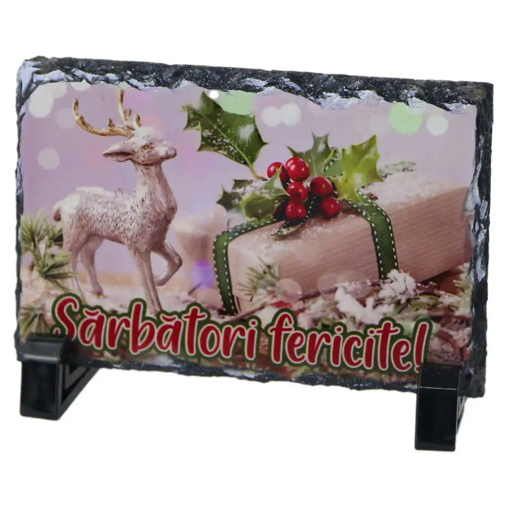 Placa ardezie „Sarbatori Fericite!” 14×9 CM