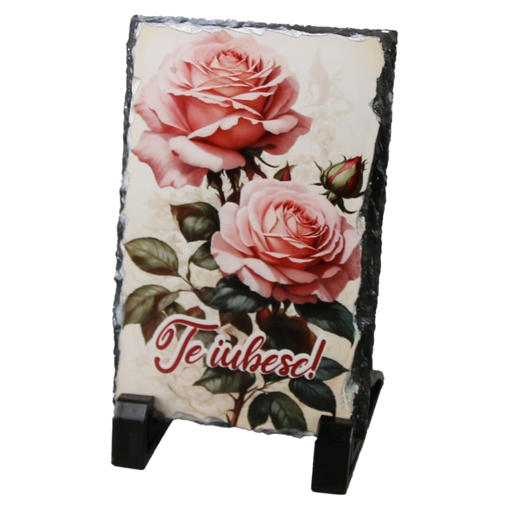 Placa ardezie „Te iubesc!” 9×14 cm, Trandafiri