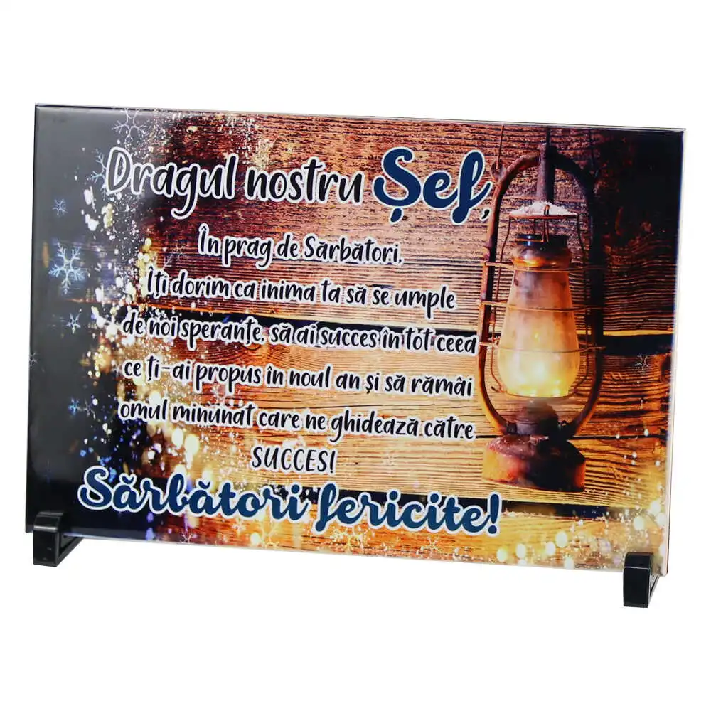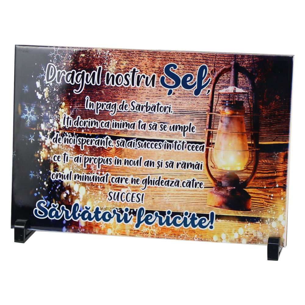 Placa decorativa „Dragul nostru Sef, Sarbatori Fericite.” 30×20 CM