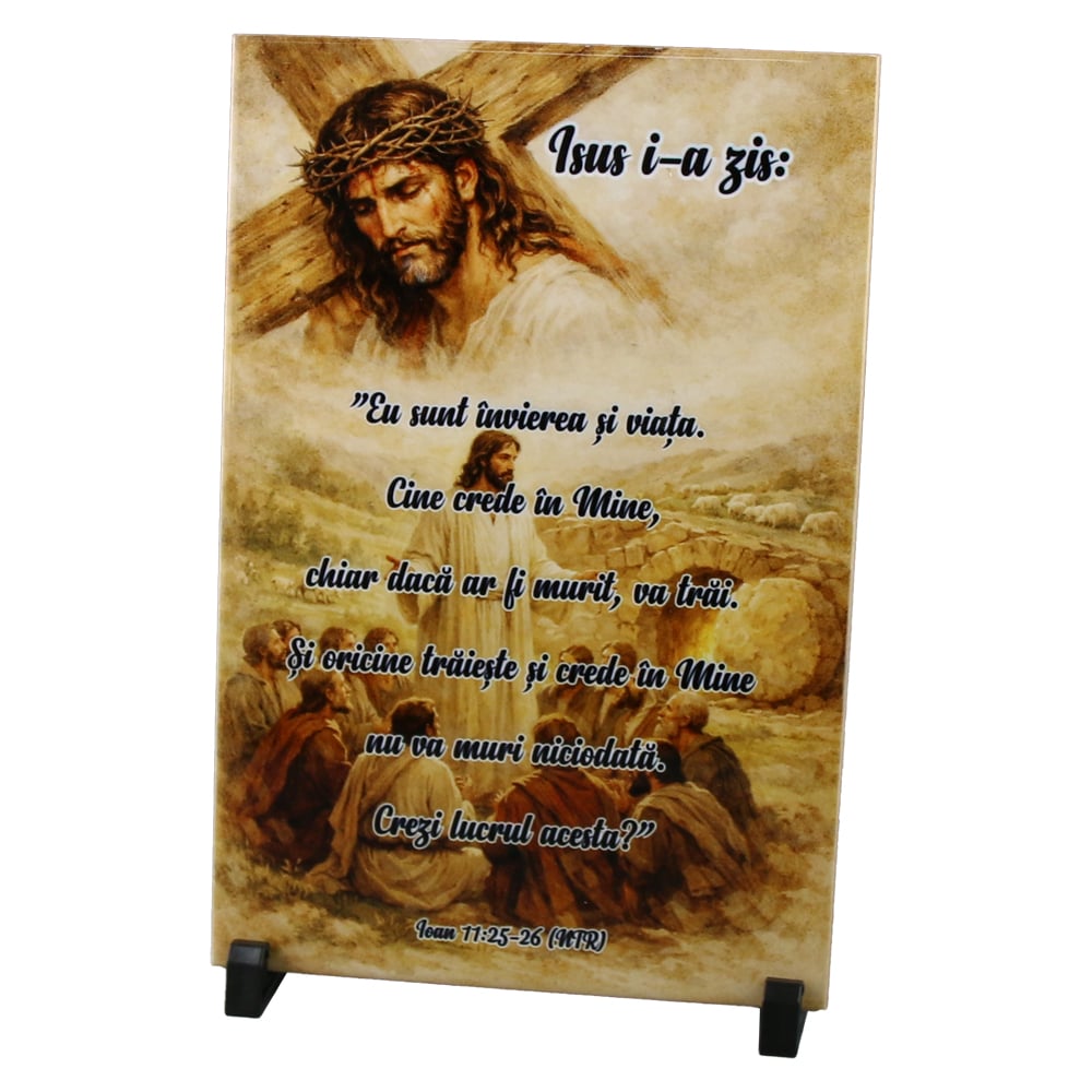Placa decorativa „Isus i-a zis: Eu sunt invierea si viata”, 20 x30 cm, faianta