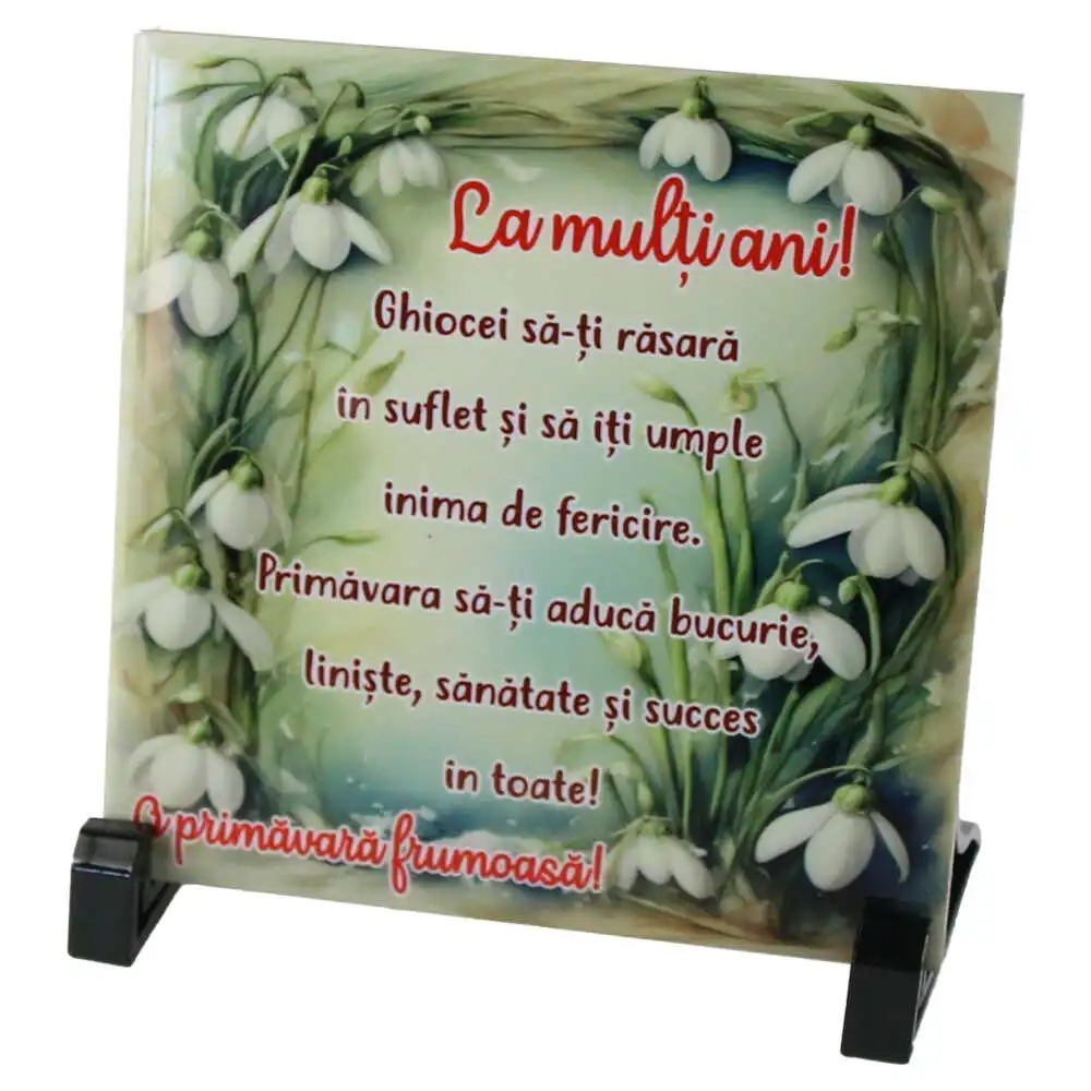 Placa decorativa „O Primavara frumoasa…”, 15×15 CM, ghiocei