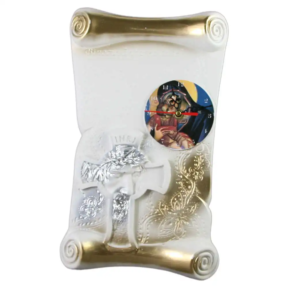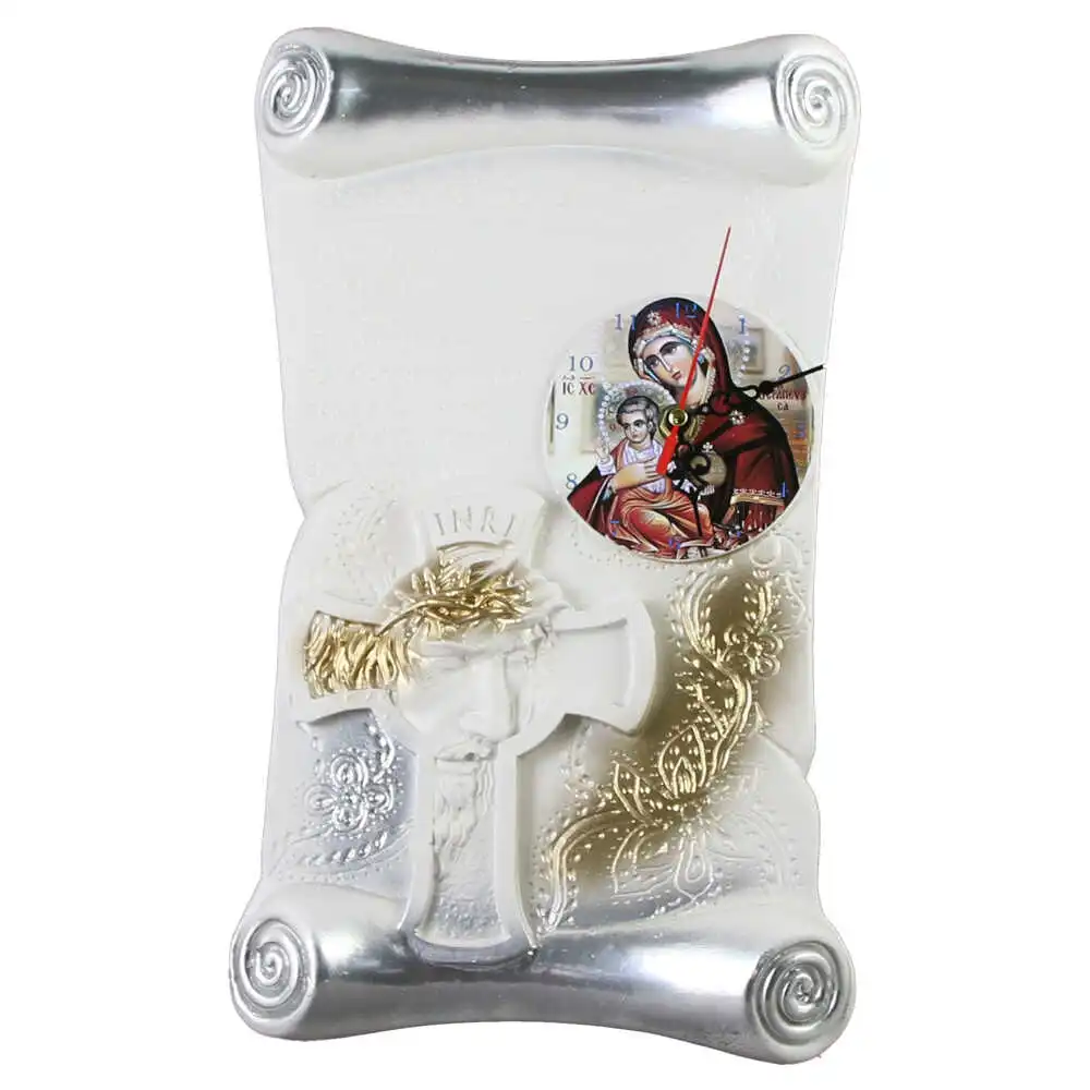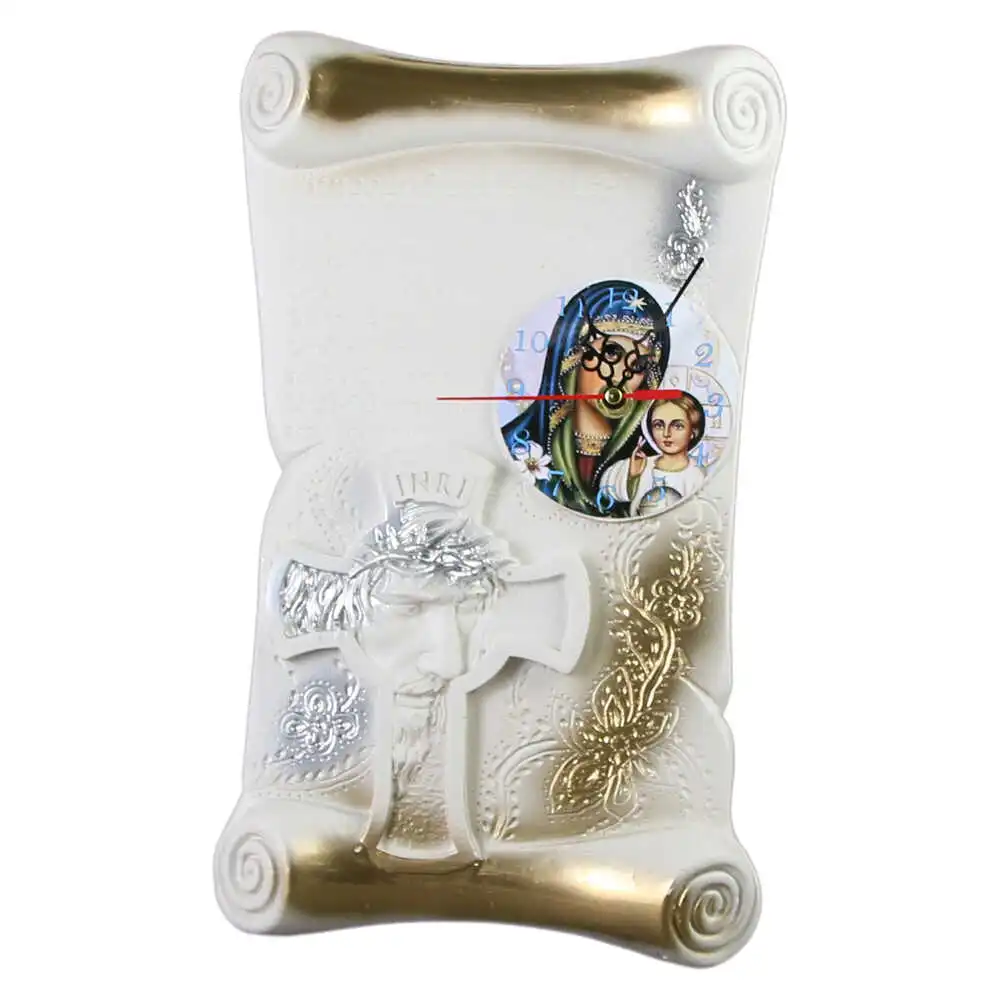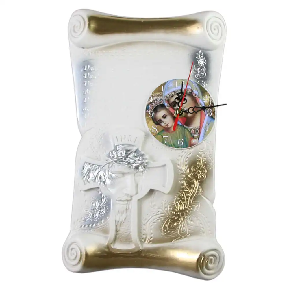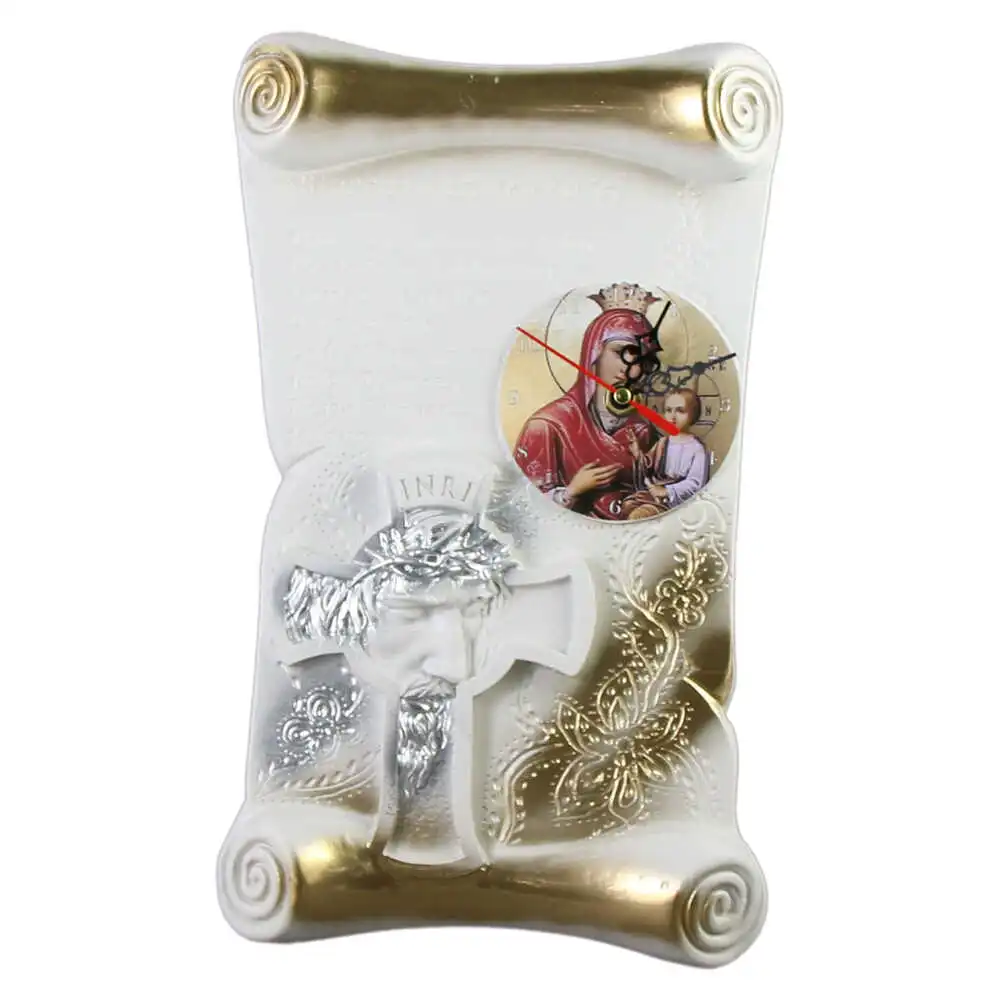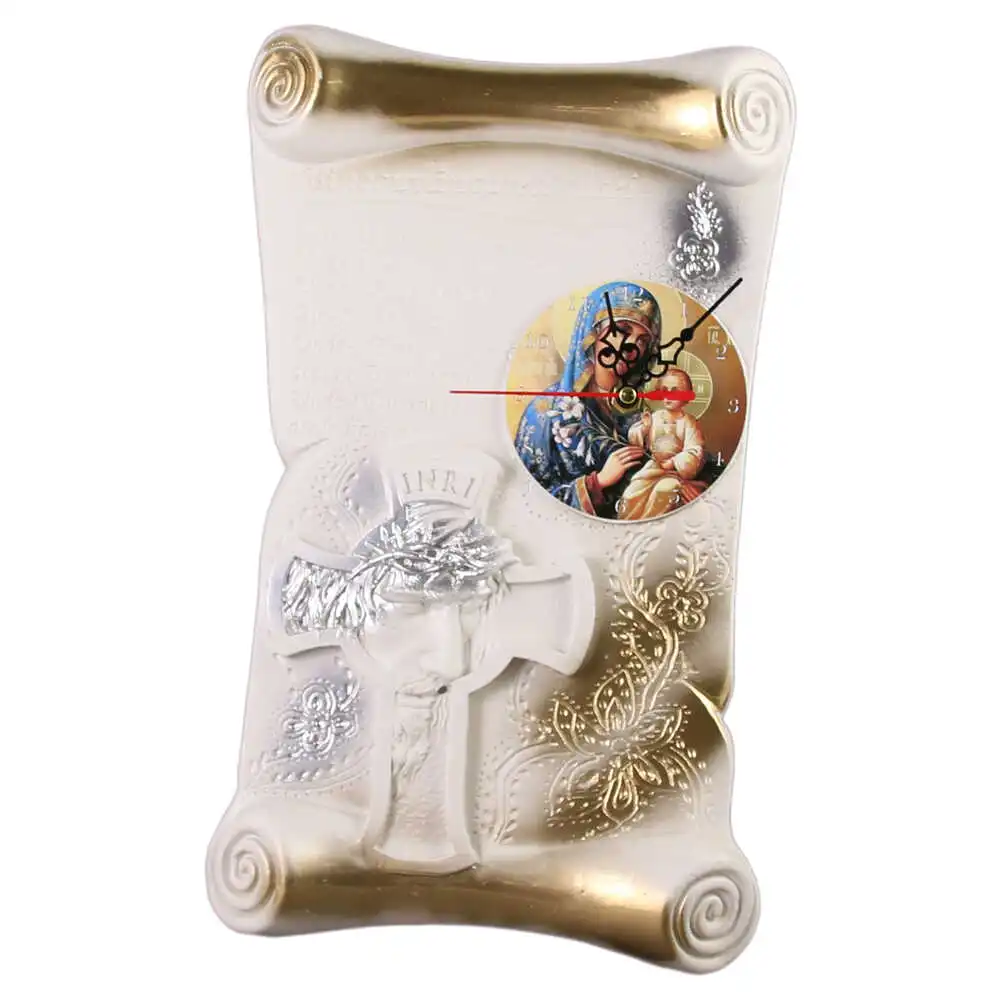 Placheta din ipsos cu ceas „Binecuvantarea Casei” 20×34 CM, Alb/auriu