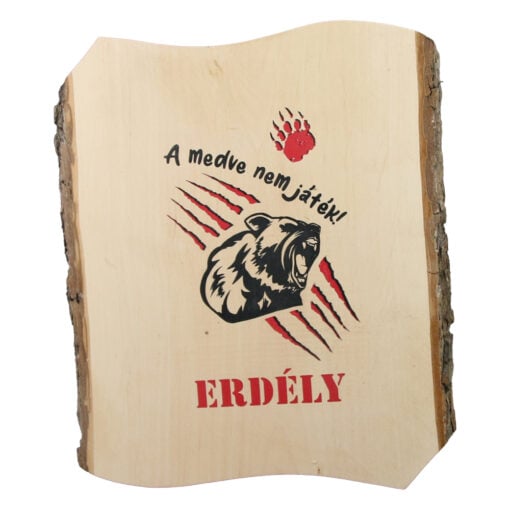 Placheta din lemn „A medve nem jatek/Erdely” 24×28 cm