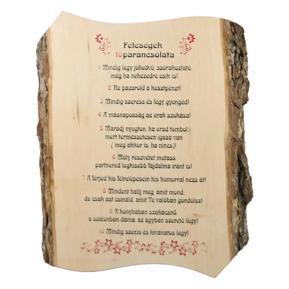 Placheta din lemn „Felesegek Tizparancsolata” 22×28 cm