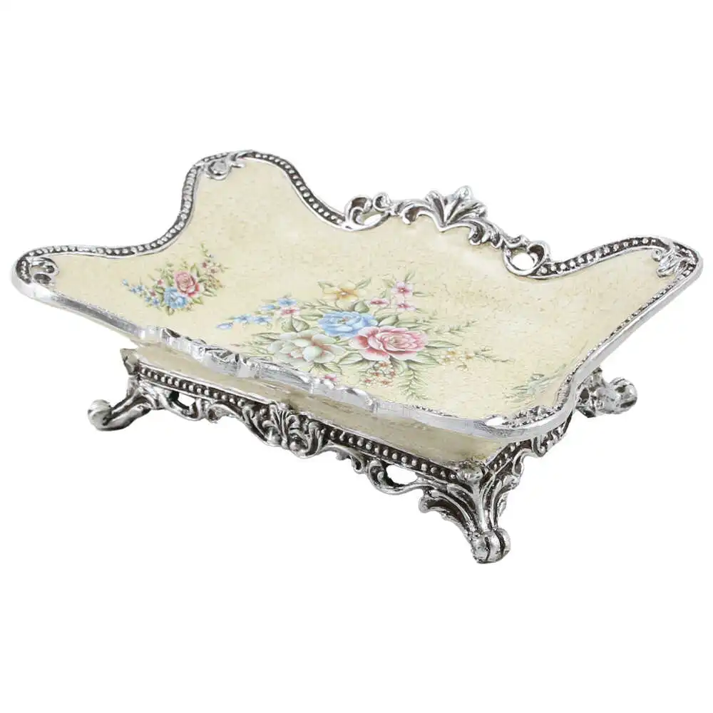 Platou cu picioare, din rasina, Trandafir crem, 32×23 CM