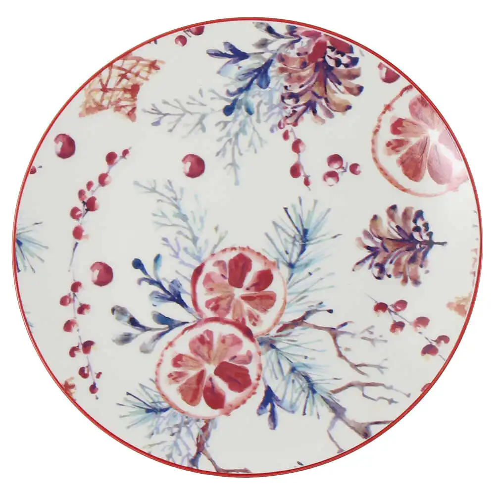 Platou din ceramica Xmas 19 CM, Bobite rosii & Orange