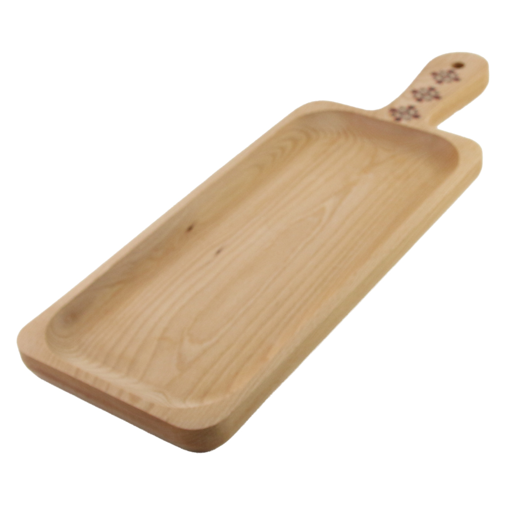 Platou din lemn cu maner pictat cu motive traditionale romanesti 16 x 46 cm