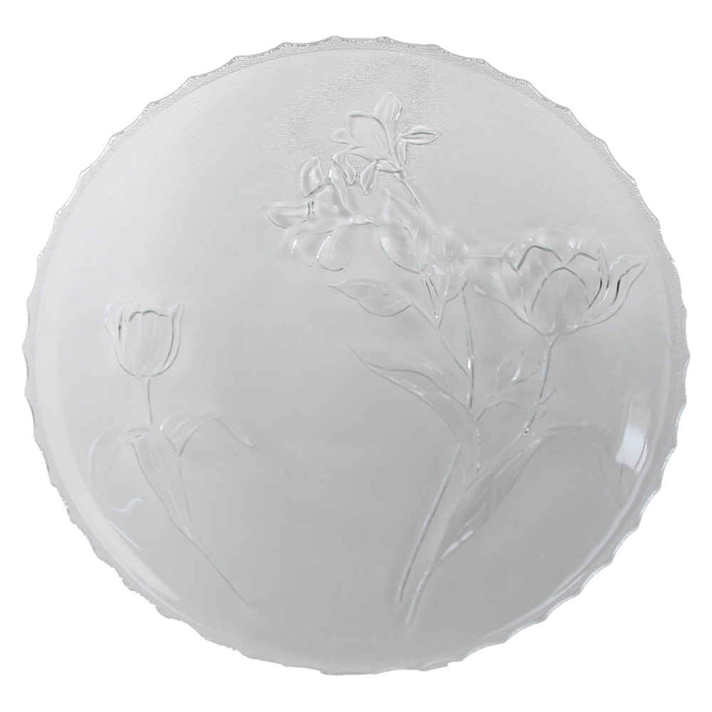 Platou elegant din sticla, diametru 30 cm. Ideal pentru servirea aperitivelor, gustarilor sau deserturilor.