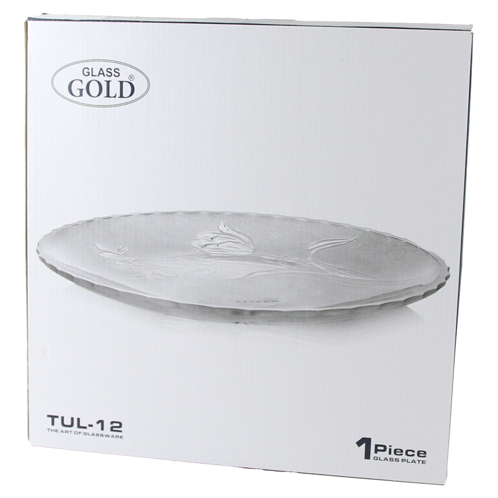 Platou din sticla 30 cm Tulip Glass Gold