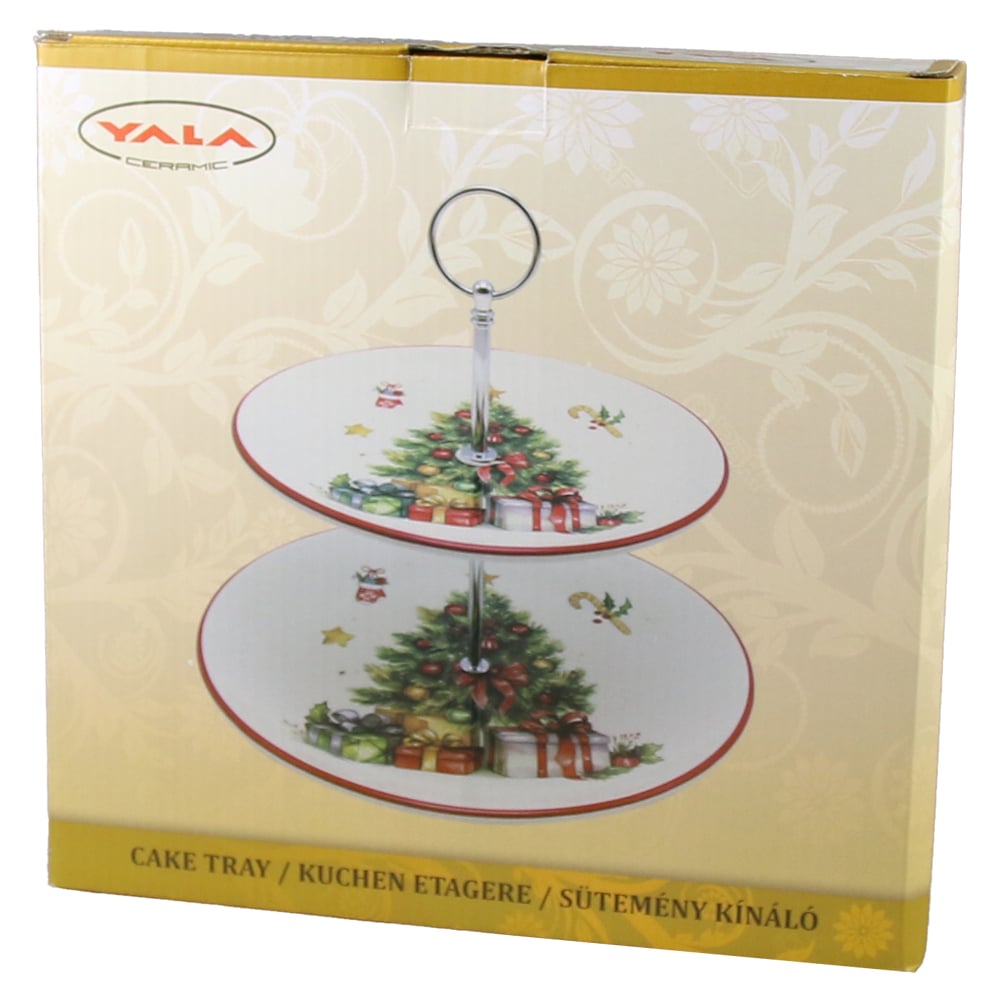 Platou etajat cu 2 nivele, din ceramica, 26/24 CM, Brad de Craciun