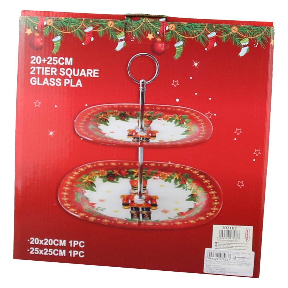 Platou etajat cu 2 nivele, din sticla, 25/20 CM, Spargator de nuci