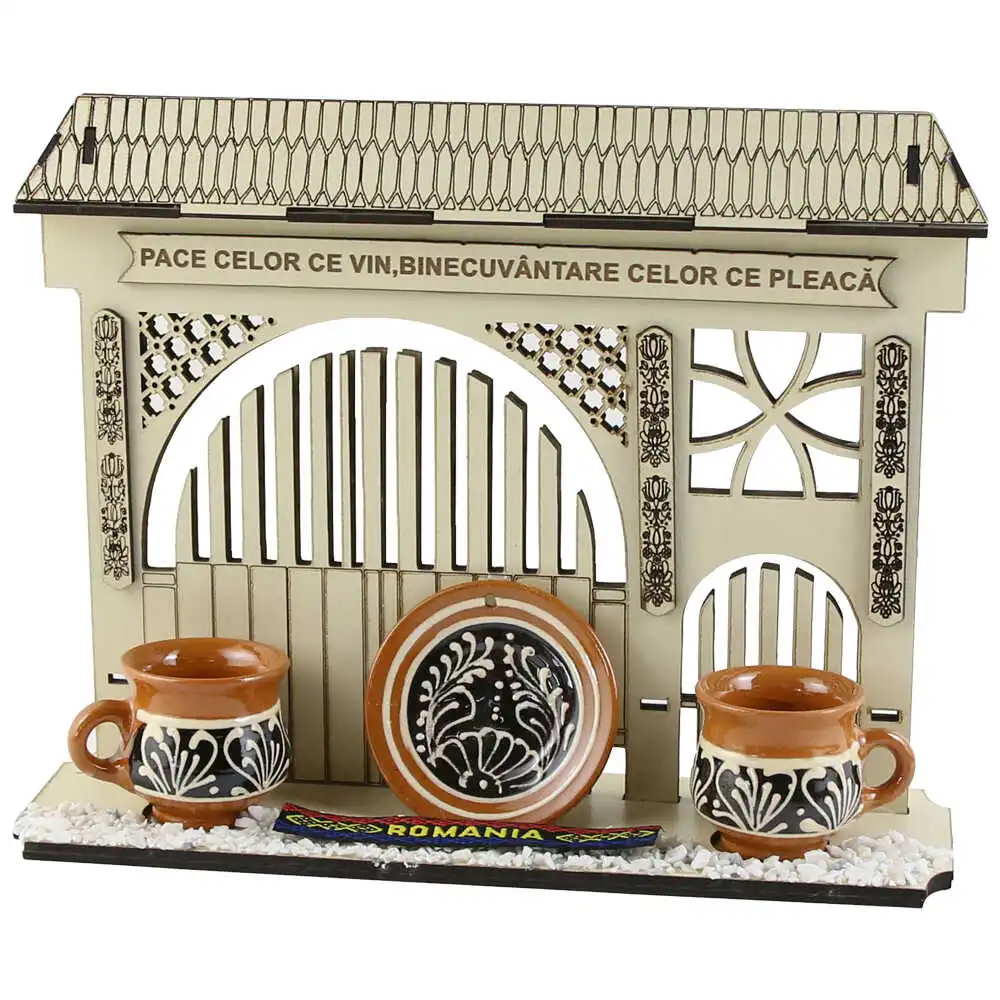 Poarta decorativa din lemn „Pace celor ce vin…”, Romania