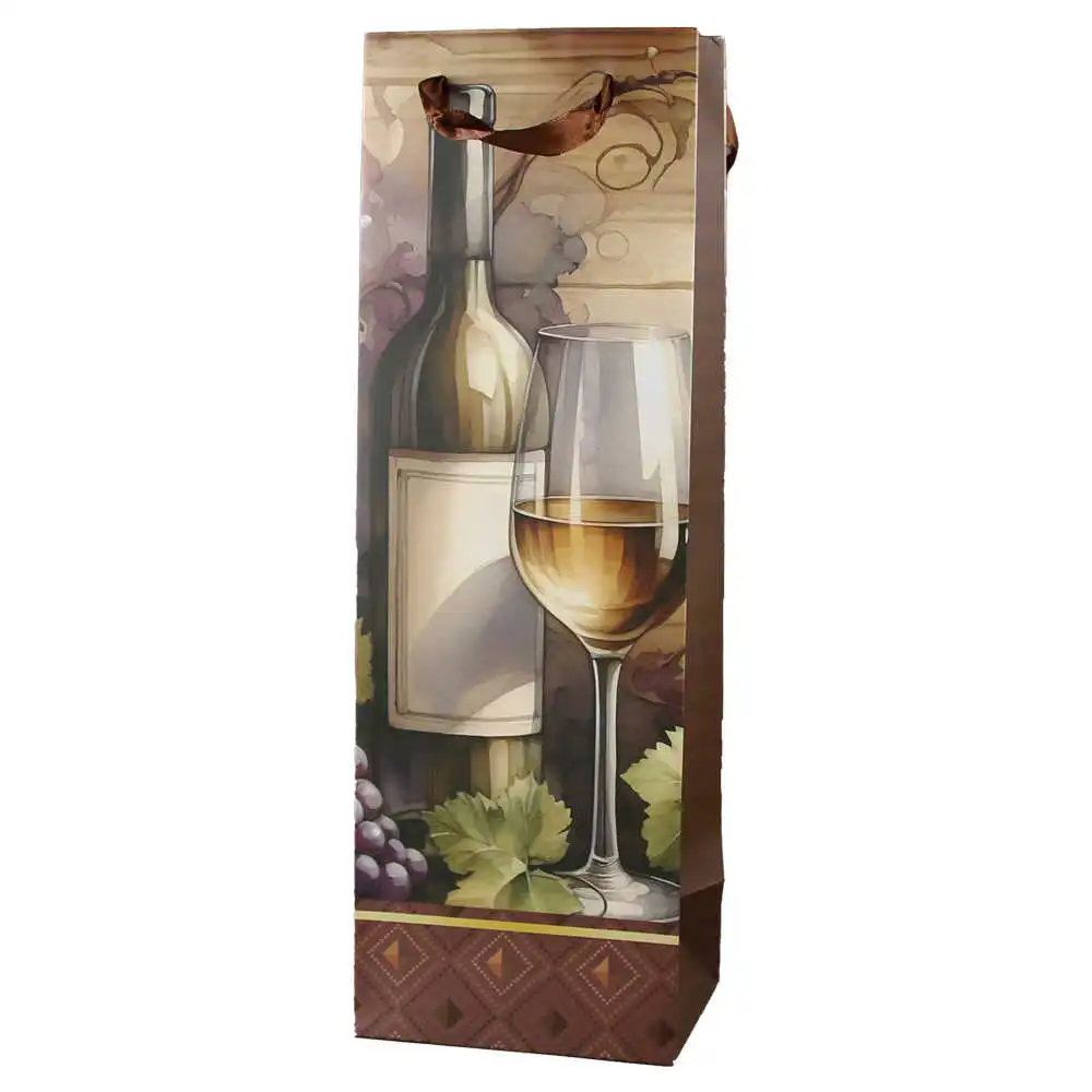 Punga cadou bauturi din hartie 12×36 cm, Vin cu pahar