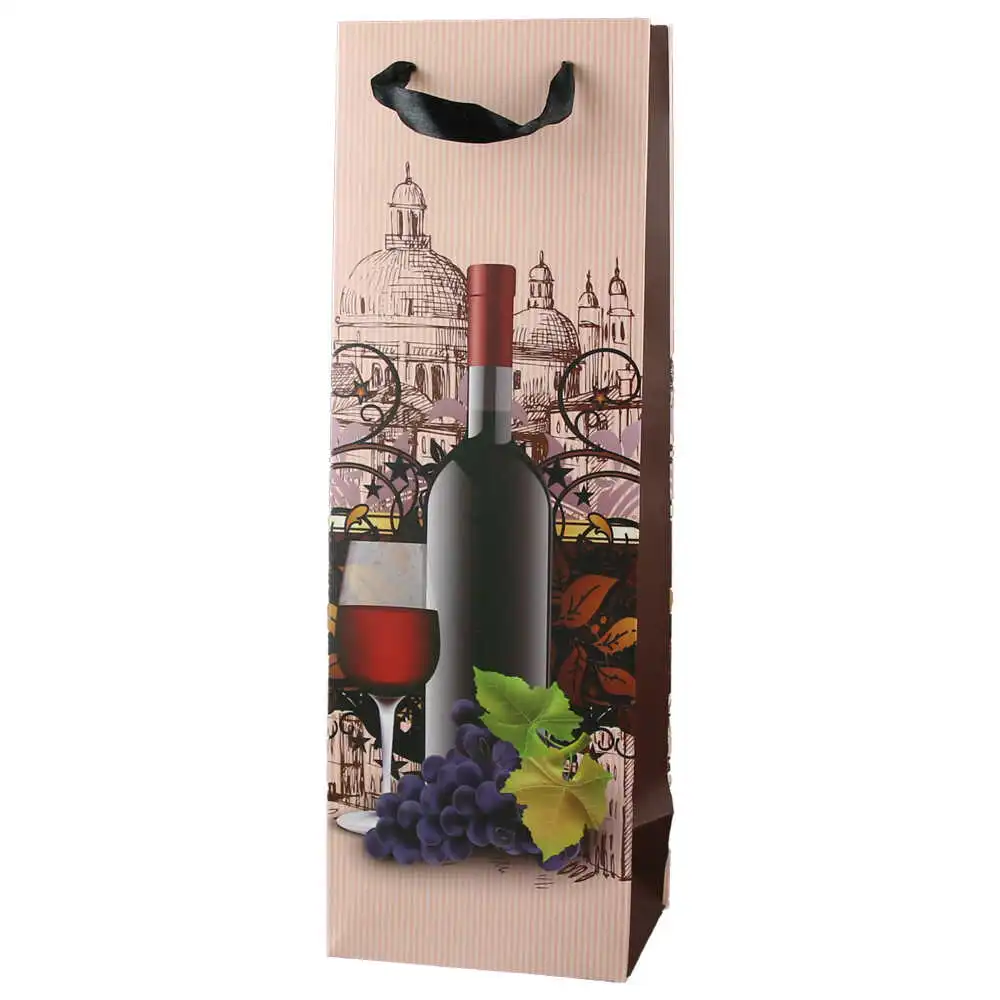Punga cadou bauturi din hartie 12×36 cm, Vin cu struguri