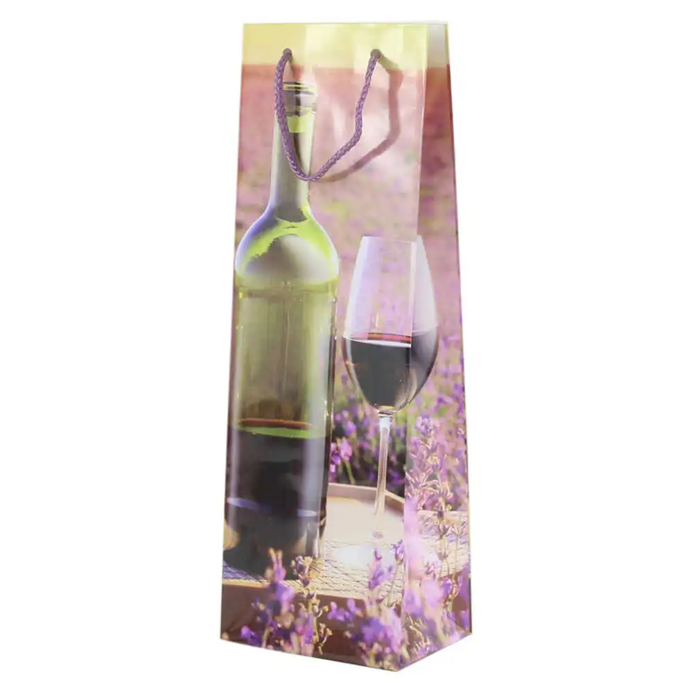 Punga cadou bauturi din hartie laminata 12 x 36 CM, Lavanda