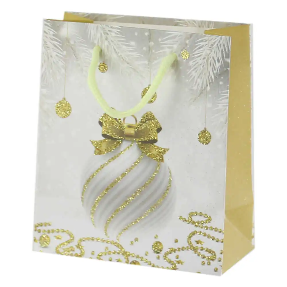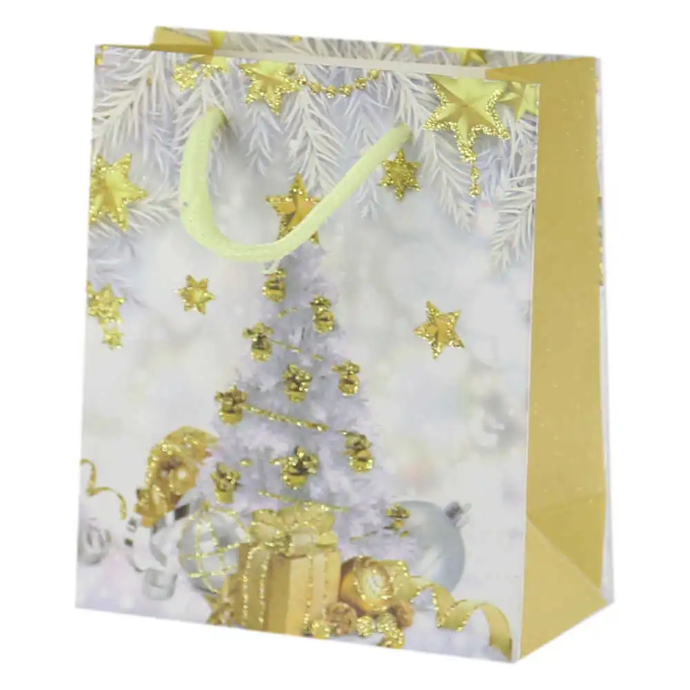 Punga cadou Craciun 12×14 CM, White & Gold