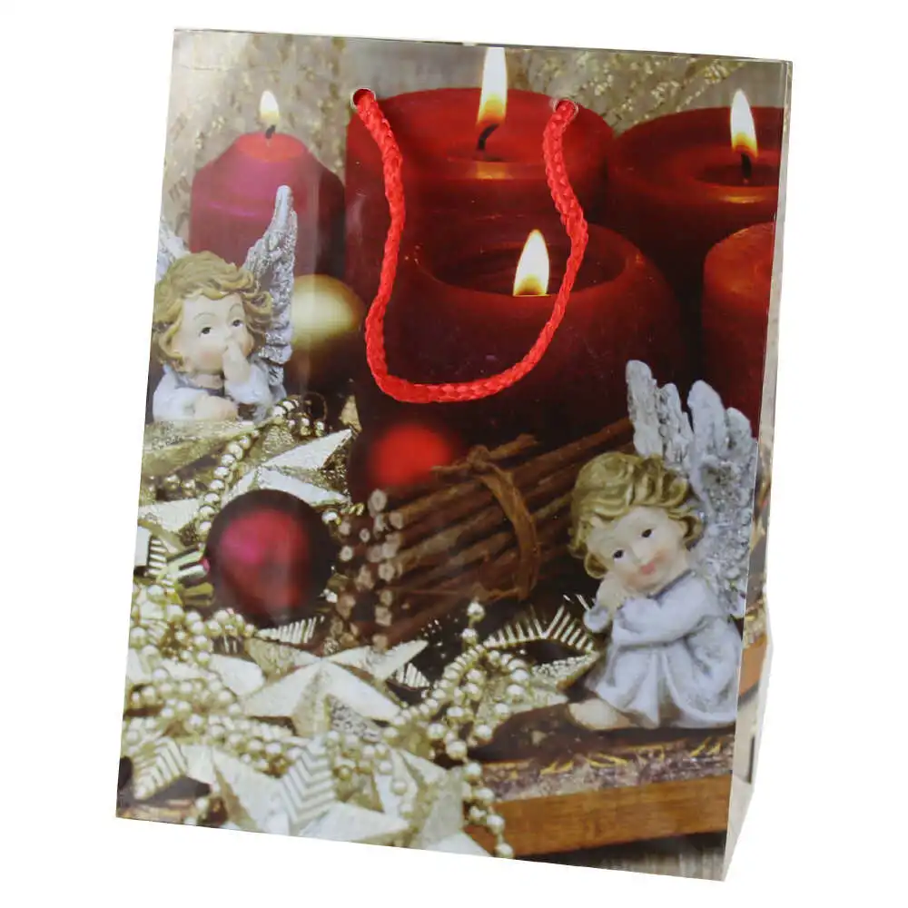 Punga cadou Craciun 18×23 CM – Ingerasi si luminari rosii
