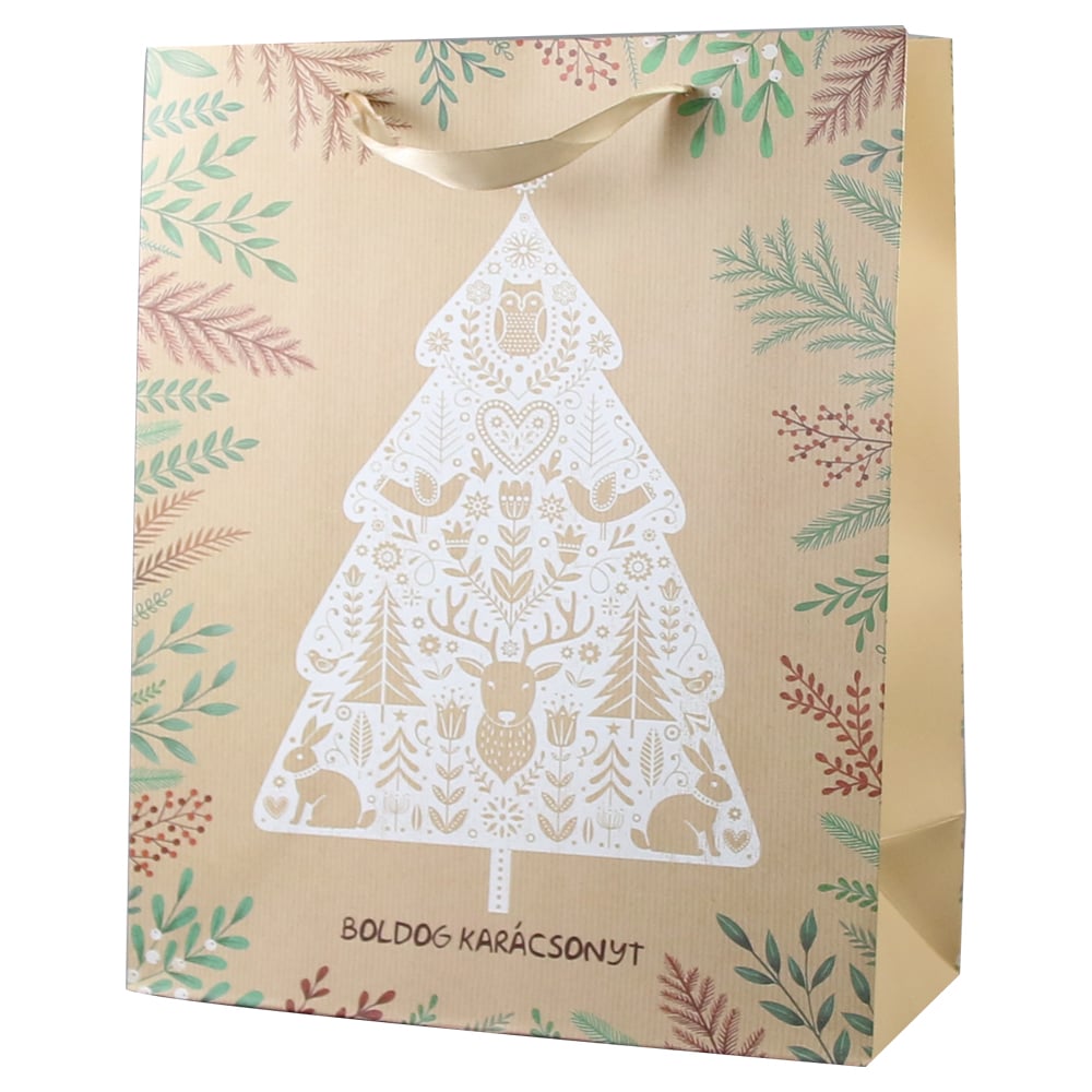 Punga cadou Craciun 26×32 CM, „Boldog Karacsonyt”, Brad