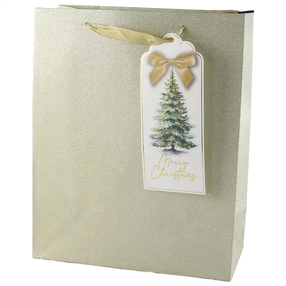 Punga cadou Craciun 26×32 CM, „Merry Christmas”, Auriu cu glitter
