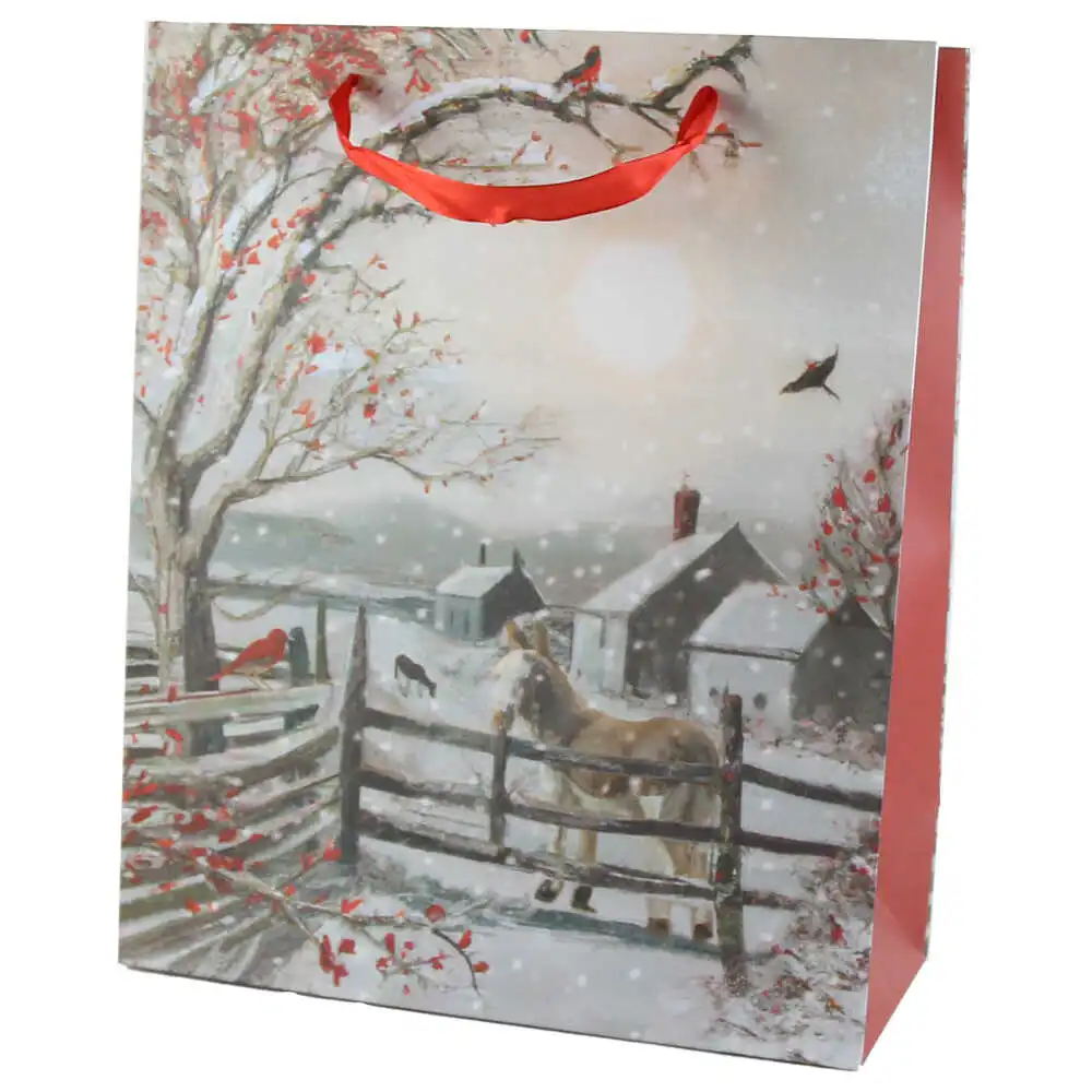 Punga cadou Craciun 26×32 CM, peisaj de iarna cu casute