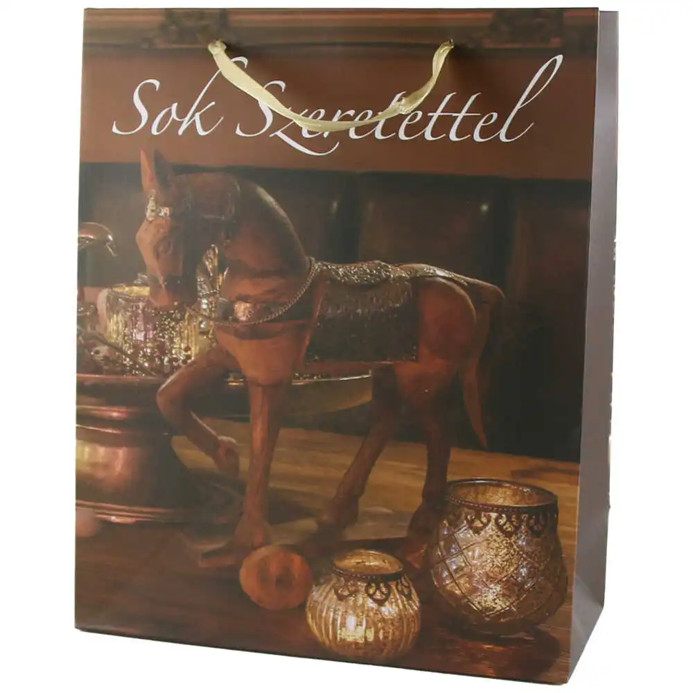 Punga cadou Craciun 26×32 CM, „Sok szeretettel”, Calut din lemn
