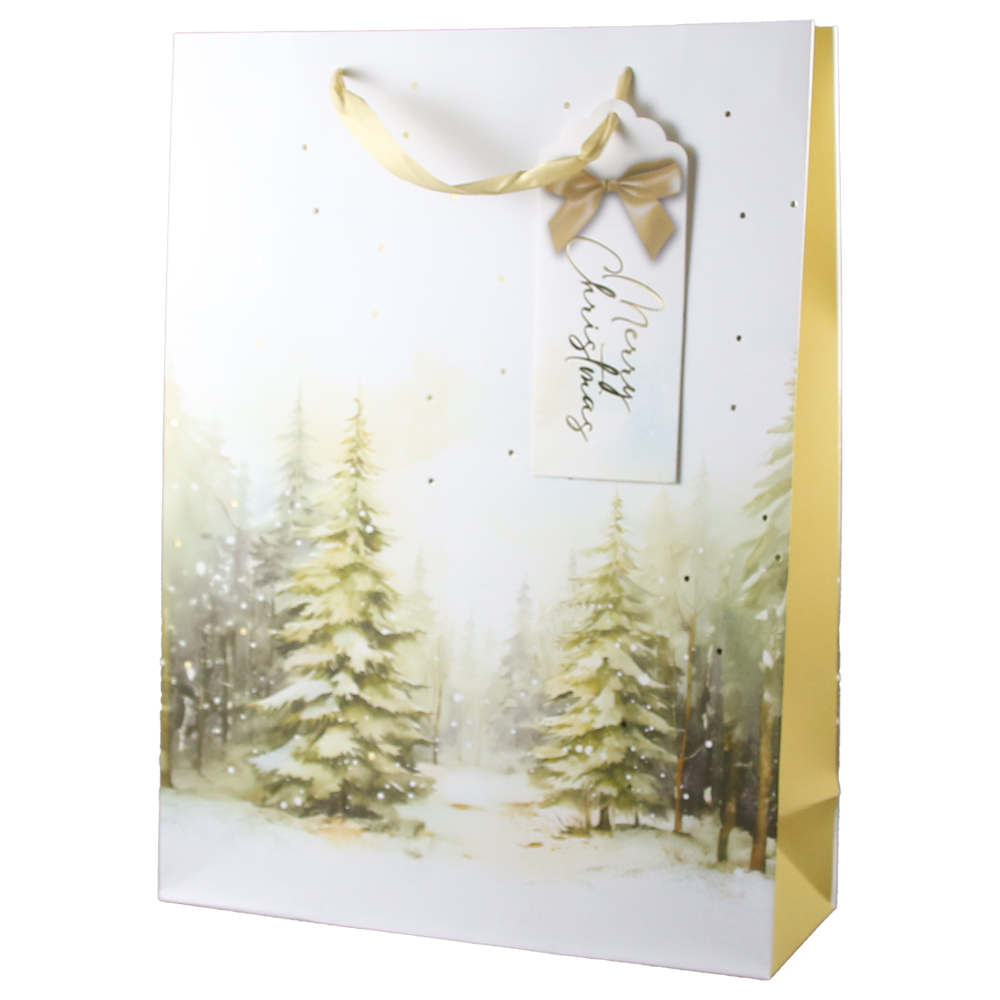 Punga cadou Craciun 31×42 CM, „Merry Christmas”, cu eticheta, padure