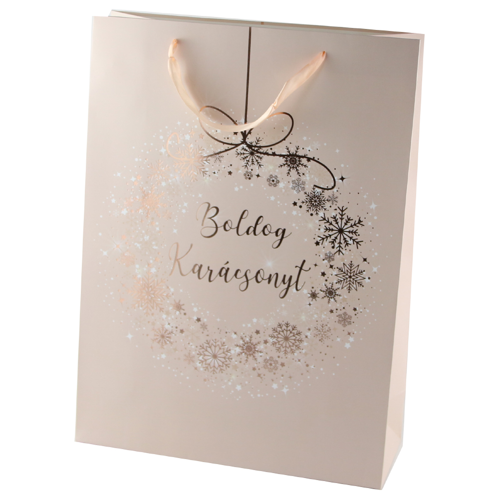 Punga cadou Craciun din hartie 31×42 CM – Boldog Karcsonyt/Roz