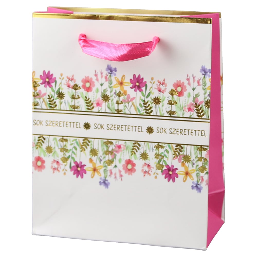 Punga cadou din hartie 11×14 cm, „Sok szeretettel”, Flori de camp