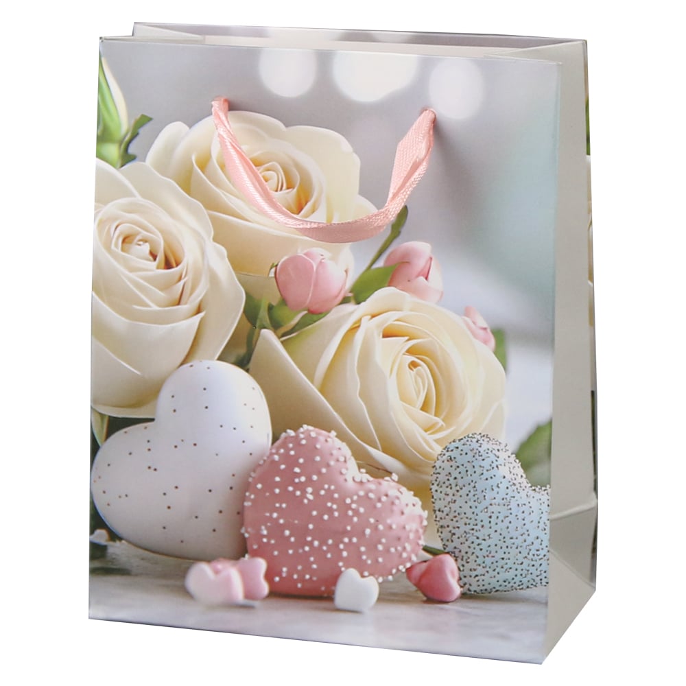 Punga cadou din hartie 11×14 cm, Trandafiri cu inimioare