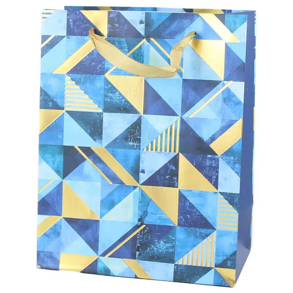 Punga cadou din hartie 18×23 CM, albastru & auriu