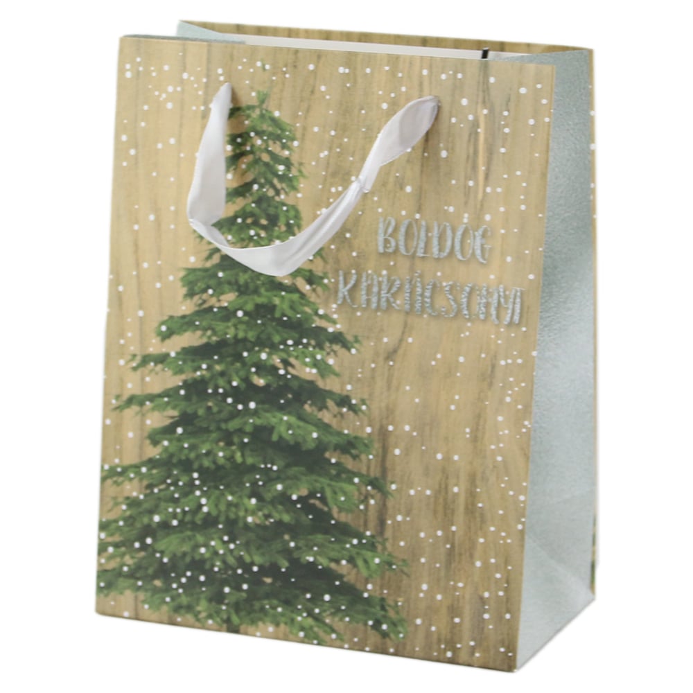 Punga cadou din hartie 18×23 CM „Boldog Karacsonyt”, Brad decorativ