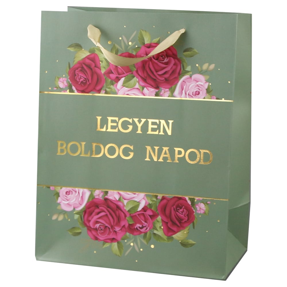 Punga cadou din hartie 18×23 cm, „Legyen boldog napod”, trandafiri