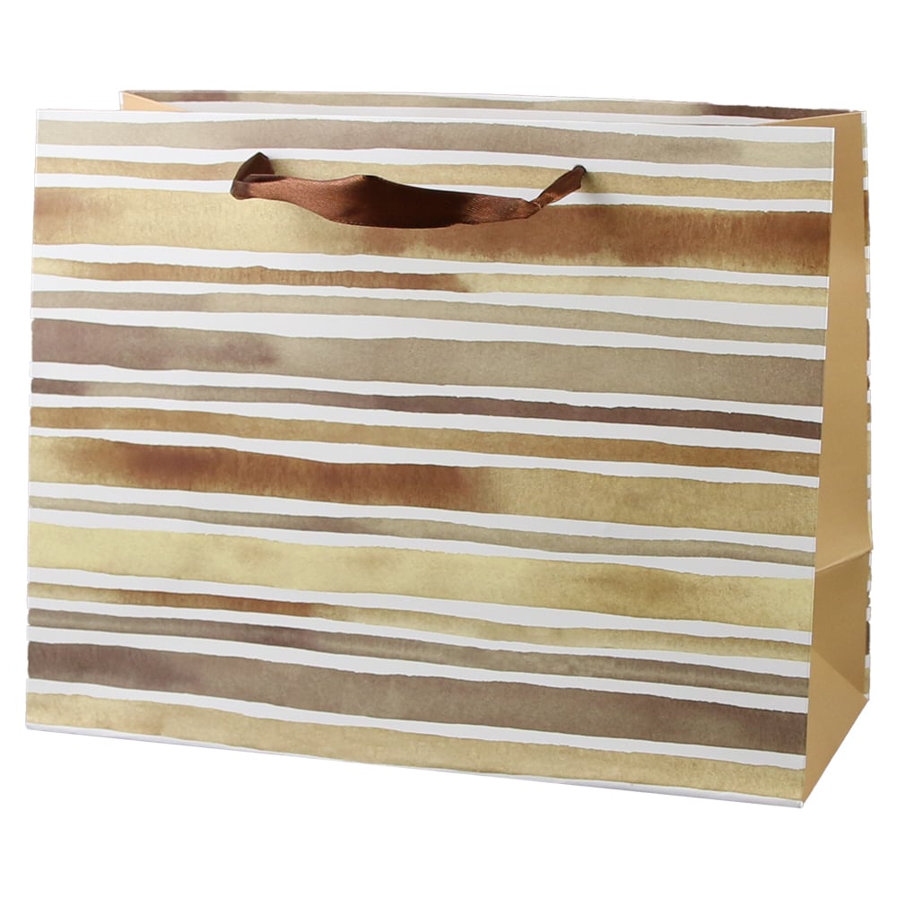Punga cadou din hartie 23×18 cm, Dungi maro degradee