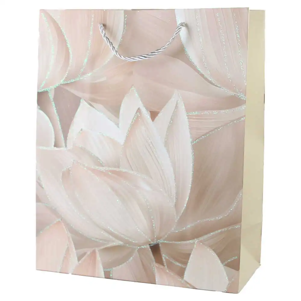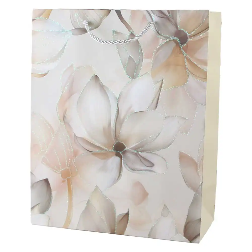 Punga cadou din hartie 26×32 CM, Flori cu sclipici