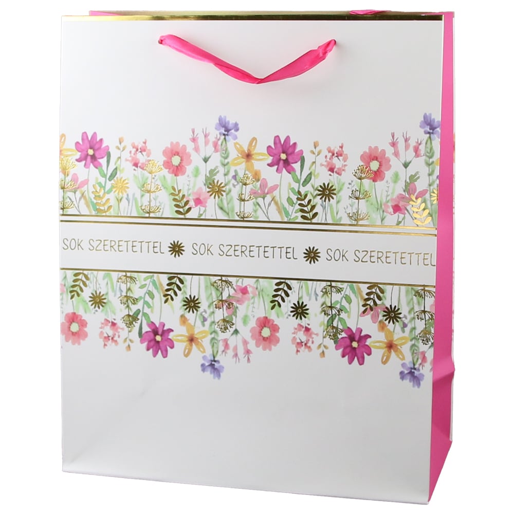 Punga cadou din hartie 26×32 cm, „Sok szeretettel”, Flori de camp