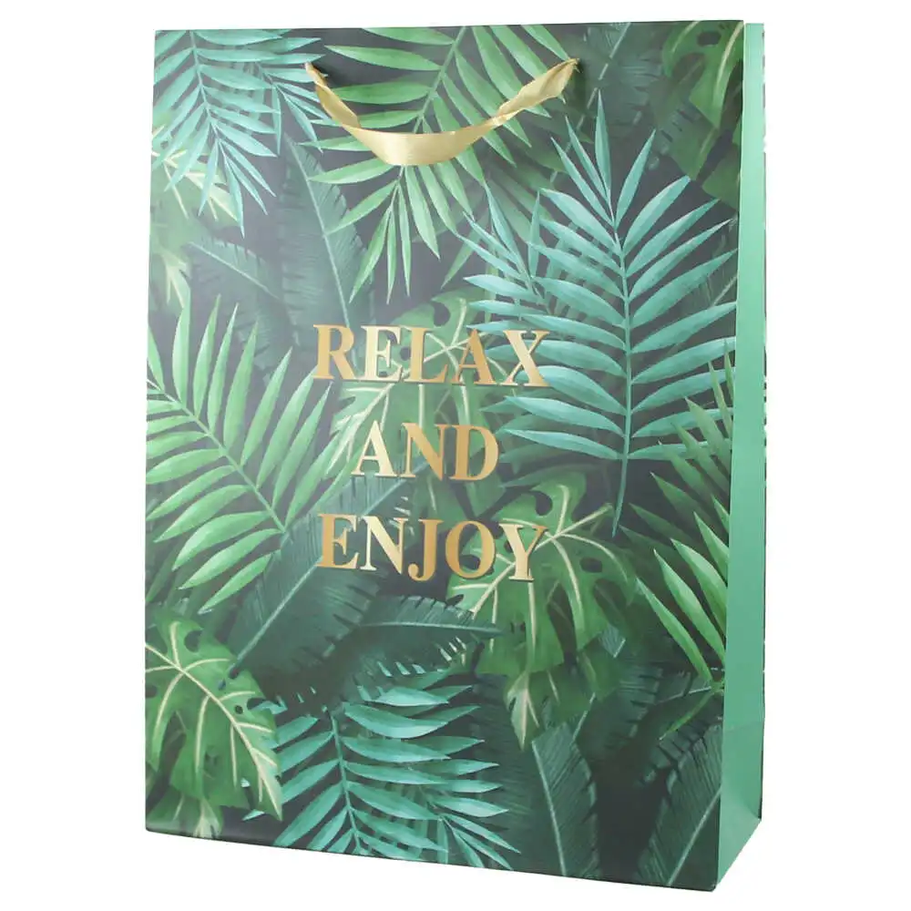Punga cadou din hartie 31×42 CM, „Relax and Enjoy”, Frunze