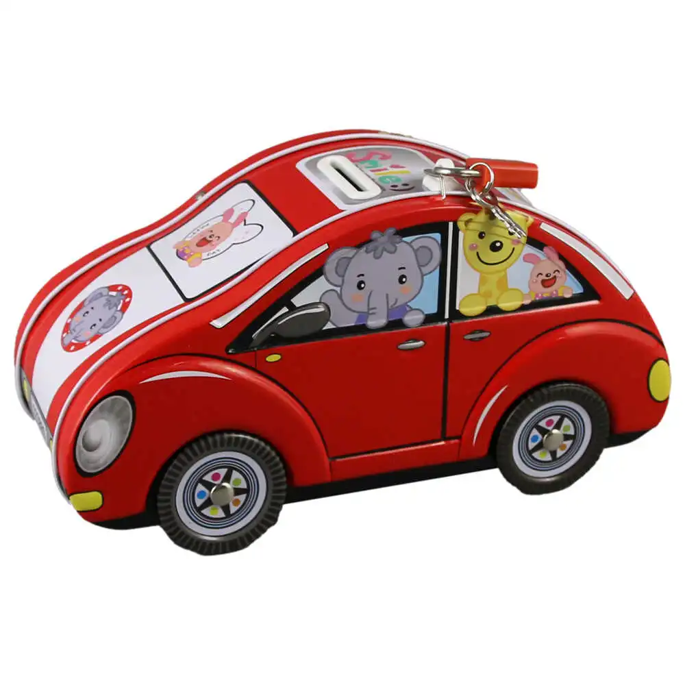 Pusculita metalica cu lacat si chei, Masinuta, 21×11 CM