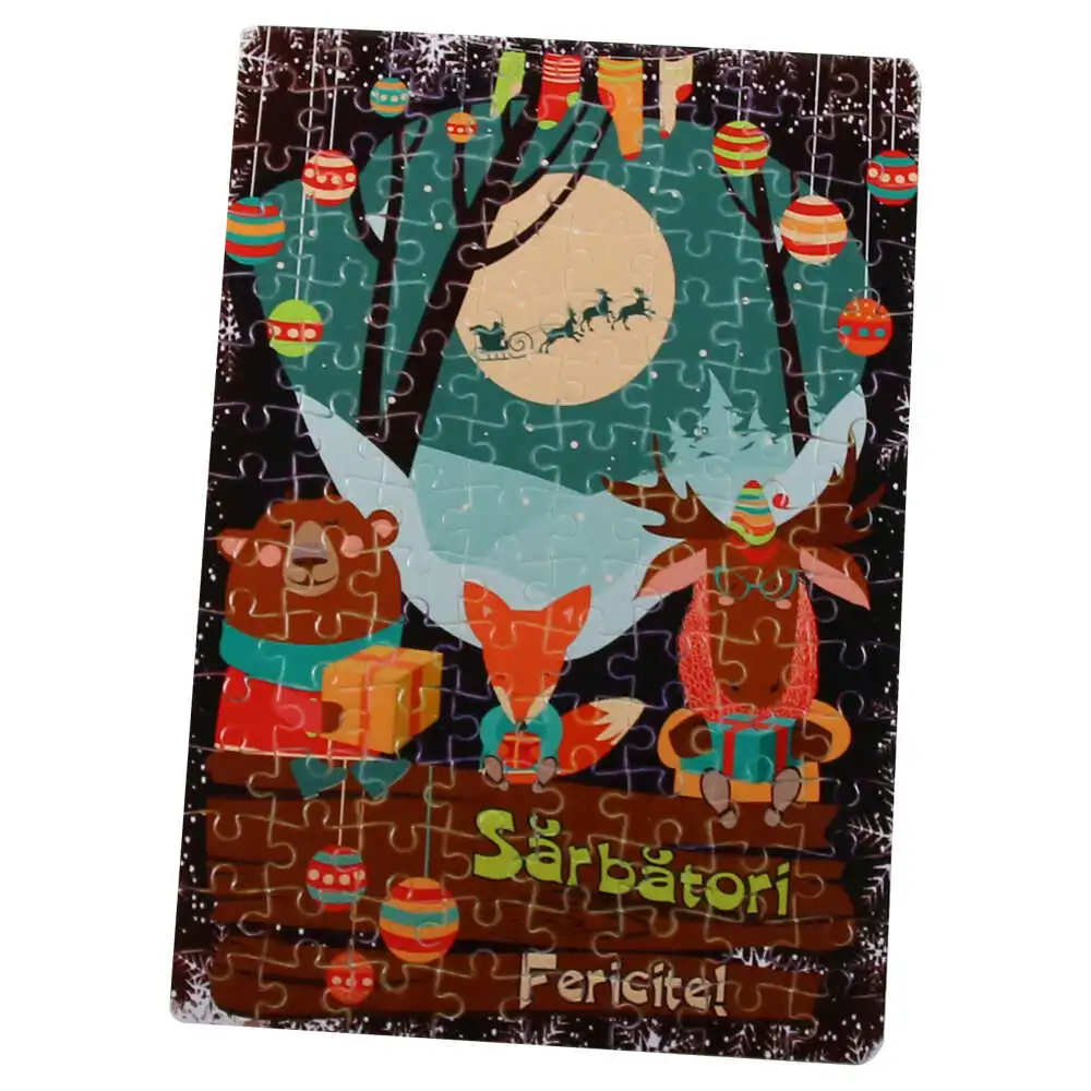 Puzzle 120 piese „Sarbatori Fericite!” 20×29 CM, Craciun in Padure