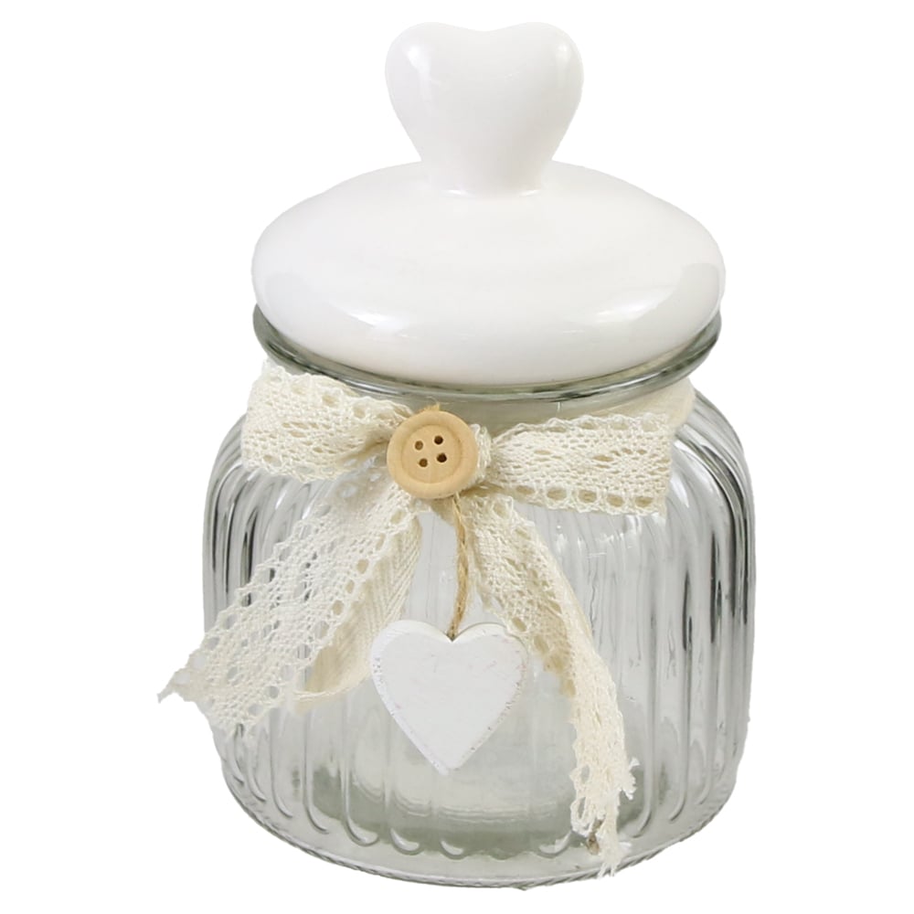Recipient condimente din sticla cu capac, 11×16 CM, cu dantela si inimioara lemn